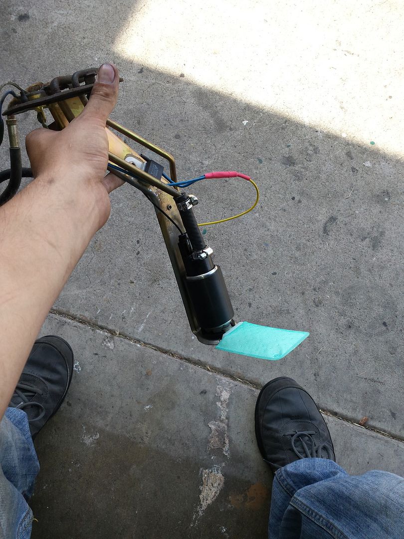 The nuts that hold the straps on are usually rusted out and When trying to remove the nuts you will possibly break that bracket so what I did was remove the two bolts that hold the bracket to the frame. While removing the straps make sure you have some sort of support system such as a trans jack as the tank is big and awkward. Once the tank is down pull the vent tube off then remove the pump assembly and replace the pump and strainer and put together as necessary. Then replace everything in the order it was taken apart.
